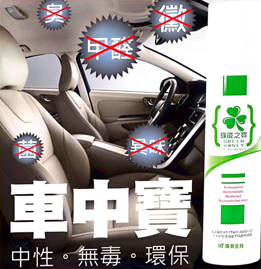 城市生活報 | 本報編輯部 台北編輯報導 | 2024.07.20 | "奈米TTA複合抑菌除臭噴瓶"具有抗菌、抑菌、除臭、分解異味。 中性無毒無害等特性 室實驗人體母細胞、嬰兒細胞、幹細胞無毒..等並取得相關檢驗報告) 圖文: "奈米TTA複合抑菌除臭噴瓶" 適用:寵物(可直接噴於寵物身上)、居家生活用品、汽車內裝 輕搖瓶身後按壓噴頭,產生霧狀TTA噴霧,噴霧乾燥後即形成具抗菌除臭功效之保護膜。 被噴物品(例:家具、桌面、寵物用品及車內裝..等)與噴頭最小距離需達30公分。 TTA噴霧乾燥後形成之護膜為淡黃色,欲噴塗之物件(如純白或深色)請先於不明顯處試噴。 汽車之儀表板、透明玻璃、後照鏡不建議噴塗。 本材料乾燥後附著力強,若噴塗過量請立即以濕布擦拭乾淨,待表面乾燥後重新噴塗。 產品功效: 長效型抗菌、抑菌。 分解異味: 可分解密閉空間中如甲醛、魚腥味、腐敗食材、尿騷味、嘔吐物、動物死屍..等有機揮發物氣味。 建議用量: 每米平方大於15g(>15g/㎡) A 綠能之寶 ¬車中寶 圖文: 車中寶 車內存在大量甲醛 例如座椅皮面腳墊車頂隨時揮發中,陽光 通氣功能障礙、破壞肺部細胞DNA之連結 引發小孩患哮喘的機率增高。 噴塗後可隨時分解甲醛及總揮發性有機化 合物,氧化還原分解成水跟二氧化碳。 噴塗於冷氣濾網上,可使車內空氣保持乾 淨清新無霉味。 B 綠能之寶-環保寶 圖文: 環保寶 噴塗於 1.牆面、室內木製(衣柜、書櫃、抽屜)、 皮製等家具可分解甲醛 及有機揮物,保護呼吸系統。 (經清華大學原技中心測試評定為符合綠 建材原則)。 2.冰箱內可抑菌、抗菌、分解臭味。 3.衛浴間、餐桌、廚房、流理台、水槽、 可防黴抗菌、抑制細菌攀長。 4 用於冷氣過濾網可抑菌、抗菌、分解空氣 中有害有機揮發物清淨空氣。 5.噴於枕頭、棉被、衣物、窗簾可減少過敏原孳生。 C 綠能之寶-寵物寶 圖文: 寵物寶 均勻噴塗於寵物活動空間(室內、地毯、 地板、寵物屋、貓砂) 1.解動物排泄物及動物身上散發之異 味。 2.可抑制動物身上徵菌之繁衍,亦可防止 動物傷口感染。 3.對活體無害,故不能除蚤類及虱類。 製造商:廣泰奈米生物科技股份有限公司 地址:台北市中正區寧波東街1號4樓 官方網站:www.ktnbt.com.tw 電話:886-02-26018888 傳真:886-02-33433138 |
