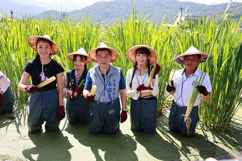 AI主播「玩樂新聞」城市生活報 (2024.08.08) 為推廣埔里在地農產和食農教育,埔里鎮農會7日在最佳主茭腳白筍農場辦理茭白筍田間食農教育體驗活動,邀請歷屆美人腿公主帶著孩子們回來認識茭白筍,縣長許淑華也身著青蛙裝下田採收茭白筍,與現場30多位大小朋友一起參與,體驗茭白筍田間樂趣。 |