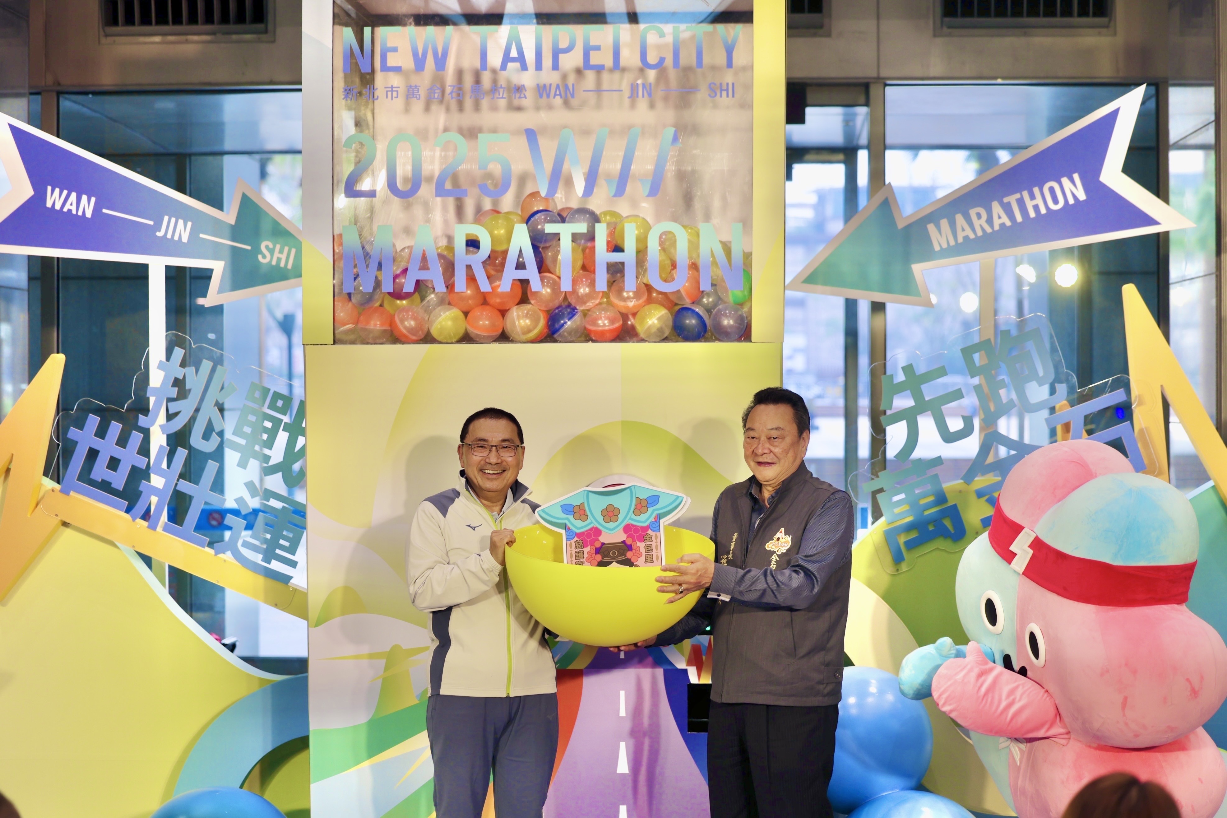 新北市府「挑戰世壯運 先跑萬金石」互動展區即日起開跑!市長侯友宜3日攜手金包里慈護宮游忠義董事長共同揭曉聯名平安符,給所有跑者滿滿祝福,邀請大家一起體驗宮廟特色的萬金石馬拉松,創造好運也保平安。