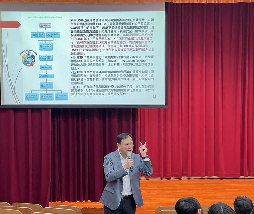 城市生活報 | 台北編輯中心 採訪報導 | 2025.05.24 | 面對碳關稅與ESG規範快速成為國際貿易新標準的趨勢,國立臺北大學商學院於5月20日舉辦「USR與綠色轉型論壇」,聚焦高等教育如何透過USR(University Social Responsibility,大學社會責任)實踐,連結地方發展、碳治理技術與國際永續戰略。 論壇由商學院院長黃啟瑞教授主持,企業管理學系副主任游志青教授協辦,並邀請中山大學中國與亞太區域研究所金士懿博士、社團法人TSEIES永續社企學院院長及成功大學工學博士余政龍博士共同主講,榮華碳中和董事長丁子華亦出席與談。 圖文:主講者助理教授金士懿博士 金士懿博士以〈從關稅壓力到碳競爭力:USR導向的碳治理戰略分析〉為題發表演講,強調:「碳治理已不再只是環保倡議,而是國家產業競爭力的關鍵基礎。大學透過USR行動,有潛力成為制度轉譯與產業創新的核心催化節點。」 他進一步分享「無耗材海洋元素萃取系統」USR實作案例,指出這不僅是科研成果,更是可迅速落地區域產業、創造學生跨域實踐與創業機會的永續技術平台。 該系統可自天然海水中提煉出多種應用性原物料,包括微量礦物濃縮液、肌膚修復精華液、海礦水等,應用領域涵蓋美妝、生技、食品、肥料、災備與軍民兩用產品。 「這項系統不僅模組彈性高,更適合作為USR創新育成場域,讓學生能從研發、品牌設計、ESG揭露到產品進出口全流程參與。」金士懿博士說。該專案現已推廣至商學、設計、工程與醫學等背景學生,發展跨院系微型創業團隊,並成功申請多項USR計畫與教育部創新實踐補助,鼓勵師生積極參與國際競賽,拓展實踐視野。 論壇中,金士懿博士也展示臺北大學長期推動USR的制度性成果。自107年起設立USR專案辦公室,並於111年升級為永續辦公室,已推動包括「三鶯低碳生活圈」、地方永續治理、碳中和教學模組等多項計畫,與地方政府、企業形成穩定合作機制。 圖文: 金士懿博士也展示臺北大學長期推動USR的制度性成果 黃啟瑞院長指出:「USR是推動人才培育、制度設計與地方共創的關鍵橋梁,臺北大學將持續深化這項基礎工程。」他強調,第四期USR計畫將在既有成果基礎上,不僅強化在地行動,也積極規劃國際交流佈局,朝「扎根在地、放眼全球」的方向前進。 未來將持續推動與邦交國及姊妹校間的永續合作,並拓展資源管道,評估申請政府補助的可行性,將USR計畫與聯合國永續發展目標(SDGs)中的SDG6(淨水與衛生)、SDG8(良好就業與經濟成長)、SDG14(海洋生態)、SDG17(夥伴關係)進一步整合,發展跨國低碳合作模式。 除了技術實作與平台推廣,金士懿博士亦強調制度創新的必要性,建議我國USR競賽與資源配置制度應對齊國際趨勢。他舉例如「Hult Prize」,結合創業輔導與國際媒合,首獎高達百萬美元;英國「Green Gown Awards」則設有專門鼓勵創新實作導向的獎助計畫。他表示:「若能擴大成果導向型USR資源制度,將有助於知識轉譯、人才培育與社會連結的整合與升級。」 圖文:前排右起游志青教授、余政龍教授、金士懿教授、榮華碳中和丁子華董事長與管理學院碩、博學生大合影 共同主講人余政龍博士則分享企業如何善用USR平台進行永續佈局。他指出,面對碳關稅壓力與川普政府可能重構的貿易政策,企業更需與大學合作,進行碳揭露、ESG治理與供應鏈透明化。他並介紹與《今周刊》合作推動的「國際永續管理經理人認證課程」,旨在建立制度化、可追蹤、可落實的企業永續人才培育體系。 論壇結語強調,高等教育的USR實踐不僅是回應社會責任,更是台灣在全球碳治理與永續發展國際佈局中不可或缺的關鍵節點。唯有落實「知識轉譯—制度落地—永續創新」三重目標,高教USR方能在綠色轉型中發揮戰略引領力,助台灣建構具全球韌性的產業競爭優勢。 |