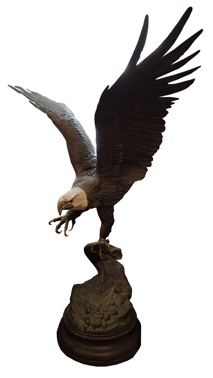 城市生活報 | 藝術線上 編輯報導 | 2025.10.02 | 【 Jules Moigniez 老鷹銅雕 】 登錄號:11400106 主要類別:銅雕 尺寸:180公分 創作者:Jules Moigniez 創作日期: 讓藏價格:NT$900,000元 讓藏進度:進行中 一尊高達180公分的「老鷹銅雕」,出自19世紀著名法國雕塑家 Jules Moigniez 之手,以其精湛的動物雕刻技藝,生動再現雄鷹振翅的姿態。作品以厚實銅材鑄造,羽翼紋理細膩、動勢昂揚,展現猛禽剛毅不屈的力量與自由精神。 Moigniez以雕刻鳥類見長,其作品兼具寫實與浪漫風格,此尊老鷹銅雕更是代表性佳作。整體比例宏大莊嚴,姿態躍動逼真,無論遠觀或近賞,都能感受到雕刻家對自然生命的細膩觀察與獨到詮釋。 此銅雕不僅是藝術收藏的上乘之作,更具備象徵意涵——雄鷹代表勇氣、自由與遠見,極適合收藏展示,亦能成為公共空間或私人典藏的視覺焦點。這件作品融合歷史價值與藝術魅力,堪稱難得的經典臻品。 如果您對本藏品有任何詢問或鑑賞,歡迎洽詢 0983351316 或加入 LINE 好友 ID : 0925157030 讀者服務洽詢。 |