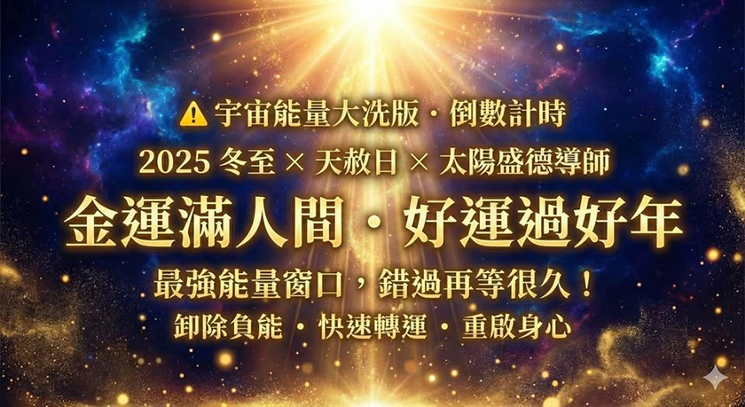 城市生活報 | 台北採訪中心 編輯報導 | 2025.12.08 | 2025年12月20日至21日適逢「冬至」與「天赦日」罕見同時到來,被視為年度中少見的身心能量轉換窗口。太陽盛德導師也於此期間來台,在林口體育館舉辦兩天大型正能量活動,被許多學員視為「宇宙雙倍加持」的珍貴時刻。 此次活動分為兩大主題: ■ 12月20日(六)14:00–17:00|黃金音樂會 以能量旋律啟動身心共振,透過音樂頻率來協助身心放鬆、轉化與提升。 ■ 12月21日(日)10:00–18:00|人生成長實作研究 導師將帶領學員進行深度心法實作,透過方法、練習與能量場帶動,協助清理負能量、調整情緒體,並強化個人生命系統的穩定度。 主辦單位指出,今年整體步調加速、人心壓力升高,許多人在工作、家庭或身心狀態上出現卡關與情緒起伏。因此,正能量活動的需求也較以往更為迫切。冬至、天赦日,加上導師的心法實作能量場,形成「三重疊加」效果,被視為一次能量補給與內在更新的最佳時機。 活動強調,透過心法練習可望在此時達到以下成果: 清理舊有負能量與情緒累積 重新啟動能量流動,回到輕盈狀態 舊因舊業較易鬆動 讓生活步調、身心狀態更快回穩 許多參與者期待能在歲末之際,以「金運滿人間、好運好過年」的祝福心念,迎接新的一年。 ■ 導師介紹|太陽盛德導師 太陽盛德導師主修電機工程,現旅居美國。自幼喜愛宗教哲學,十四歲接觸基督宗教後,展開跨越佛、道、儒、耶與密宗的心靈探索。2005年因奇遇恩師 Friend G 而開啟靈性管道,使其身心靈領域獲得突破性躍升。 多年來致力協助人們解惑與提升心靈素質,在全球巡迴授課並著作多本中英文暢銷書,讀者遍布世界各地。其課程與講座深受學員肯定,許多人透過實修改善人生、突破困境。目前為美國天圓文化機構創辦人,以及全球超級生命密碼系統精神導師。 天圓文化: https://www.richestlife.com/ |