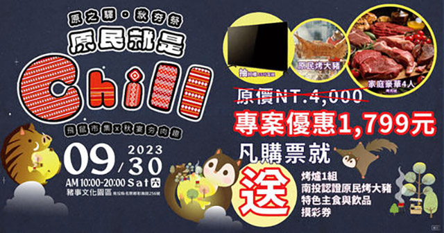 CLN城市生活報 | 本報編輯部 南投編輯報導 | 2023.09.27 | 中秋假期將至,縣府將於30日上午10時至晚間9時,在南投豬樂園文化園區舉辦「原之驛秋夯祭-原民就是Chill」活動,內容包括飛鼠市集、小小獵人、小小織女、布虎射箭體驗及一系列親子互動節目,預購烤肉組還可抽大獎,活動相關及預購資訊,民眾可至原之驛、飛鼠市集粉絲專頁,或直接搜尋活動名稱查詢,歡迎大家當天到場同樂。 「原之驛」為縣府原民局長期輔導原鄉部落產業、文化與經濟振興的計畫成果,據點設在南投縣農產運銷公司-豬樂園文化園區內,預計113年完工試營運,並與周邊的親子共融公園及2024年將完工的松嶺之星連結,提升原住民族商品市場能見度、傳遞原鄉文化,同時以原鄉旅遊資訊、文化體驗、農特產販售為賣點,打造兼具觀光休閒、文化特色的休閒廣場。 為提前推廣原之驛據點,原民局在原區規劃多項精彩活動,宣導原住民權益、原住民政策宣導、行銷原民觀光旅遊產業,展現文化技藝,分享原民美食,邀請民眾熱情參與,為南投原住民產業注入新的活力。 為了刺激消費,民眾只要現場在原之驛、飛鼠市集粉絲專頁打卡按讚,即可領取面額100元的限量飛鼠券,所有攤位、共融遊戲皆可使用,且在飛鼠市集攤位消費滿100元即贈1點,集滿6點可於下午15時30分參加抽獎活動,大獎為價值超過4,000元的家庭4人豪華烤肉組合,中獎者可以直接參加晚上的秋夯祭活動。 夜間的烤肉活動,民眾可先上「原之驛秋夯祭」網站預購1,799元家庭豪華套餐,即可品嘗美國頂級牛雪花燒烤肉片、台灣CAS豬梅花燒烤肉片、嚴選客家鹹豬肉、美國頂級骰子牛、美國頂級帶骨牛小排、頂級日本A5和牛燒肉片、頂級日本A5和牛骰子、台灣紐澳良無骨雞腿排、香草無骨雞腿排、鮮嫩蜜汁二節翅、宜蘭櫻桃鴨肉串、台灣頂級老饕豚肋眼等美味,現場還有限量的炒飯炒麵、南投認證的烤豬職人烤豬以及各式飲料湯品。早鳥預購者還可參加晚間8時30分的抽獎活動,有機會抽中55型電視、負離子吹風機、電烤箱、微波爐、壓力鍋等多項家電大獎。 |