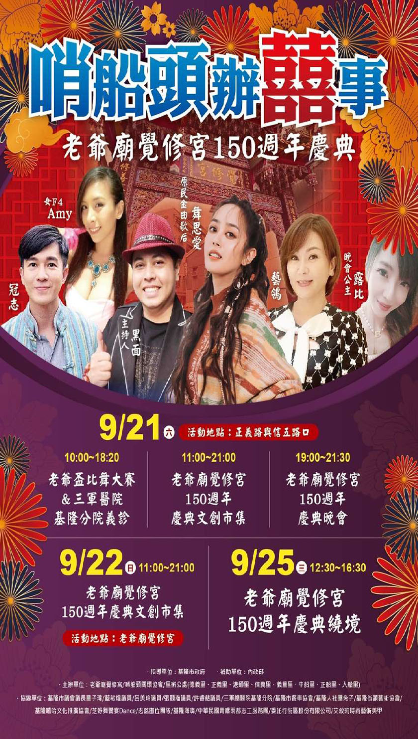 城市生活報 | 記者 李聞達 基隆編輯報導 | 2024.09.22 | 哨船頭辦囍事,基隆老爺廟覺修宮150週年慶典,此次慶典的主活動於113年09月21日(星期六)正式展開,並持續至09月22日(星期日)。在這兩天中,民眾將能夠欣賞到多項精彩的表演和活動,為慶典增添熱鬧的氛圍。其中,舞蹈比賽將吸引約20組參賽者,並邀請5位專業評審,包括知名藝人,共同評選出最佳表演者,展現基隆在舞蹈藝術上的活力。 除了舞蹈比賽,擲筊比賽也是此次慶典的一大亮點,預計將有千位民眾參與,這項活動將持續四天,為信仰與傳統文化的交流提供平台。民眾不僅能夠參與比賽,還能夠在文創市集和餐車市集中,品嚐到各式各樣的美食和手作商品,預計將有20攤攤位參與,讓大家在享受美食的同時,也能感受到基隆的創意與活力。 值得一提的是,國際醫療減碳協會與三軍總醫院基隆分院聯手於慶典期間提供義診服務,為民眾的健康保駕護航。這項服務不僅體現了醫療機構的社會責任,也讓民眾在慶祝的同時,能夠關注自身的健康狀況。 慶典的高潮將在09月25日(星期四)舉行的繞境活動中達到,屆時將有壯觀的陣頭和熱鬧的遊行,讓信徒和遊客共同體驗這一傳統宗教儀式的獨特魅力。 基隆老爺廟覺修宮150週年慶典不僅是對過去的回顧,更是對未來的展望,期待民眾踴躍參與,共同見證這一歷史時刻。 |