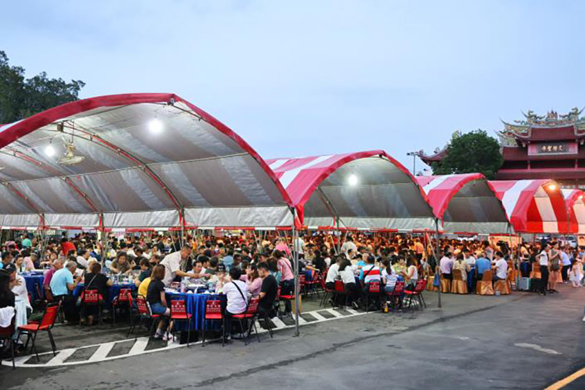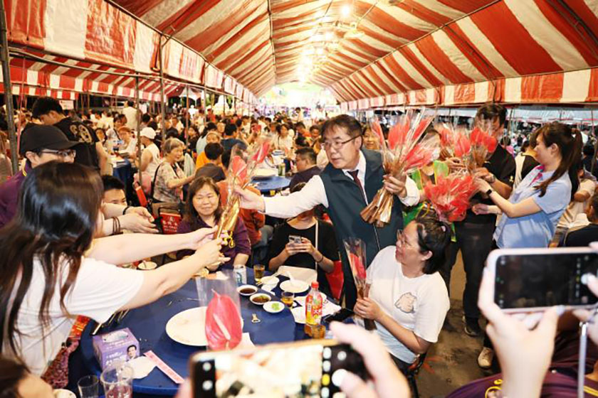 城市生活報 | 台南編輯中心 編輯報導 | 2025.05.04 | 為推廣國產土雞與在地農特產品,龍崎地區於3日盛大舉辦「2025年龍崎土雞節」,晚間在龍崎文衡殿席開160桌,端出結合當地鳳梨、竹筍與跑山土雞的「鳳梨好筍雞饗宴」,吸引大量民眾共襄盛舉,提前為母親節增添濃濃人情味。活動現場也特別致贈花卉給媽媽們,獻上節日祝福。 主辦單位表示,此活動不僅是一場在地美食盛宴,更是一場凝聚社區情感、推廣農村文化的嘉年華。希望透過辦桌文化、創意料理及親子互動體驗,讓更多人走進農村、認識在地食材、支持本土農業,進一步促進地方經濟發展與農產價值提升。 本次饗宴由專業廚師團隊運用龍崎的優質農產,精心打造多道特色料理,包括走山雞米糕、三杯蔥爆跑山雞、鳳梨栗子燉雞等創新菜色,並搭配農產市集現場展售,展現「在地食材 × 創意料理」的多元精神,讓參與民眾品味龍崎豐饒的山珍野味。 龍崎地區地勢自然、環境清新,長年為台南重要的土雞飼養地。當地積極推動產銷履歷與青年農民培育,提升土雞品質與品牌價值。此次活動也邀請在地青年農民現場示範「甕仔雞」的烹製過程,讓民眾了解美味背後的製作秘訣,並開放500份豆乳雞免費試吃,現場香氣四溢、人氣爆棚。 此外,活動還推出限量生鮮土雞特價促銷,每隻僅售350元,現場掀起一波搶購熱潮,許多民眾爭相把龍崎的「好雞味」帶回家。 為強化食農教育理念,現場設置「土雞小教室」與「食農推廣區」,透過趣味展板介紹土雞品種、飼養方式與健康飲食知識,並安排「跑山土雞互動體驗」,讓民眾近距離接觸活體土雞,深入了解農業與土地間的連結與價值。 整場活動結合農產推廣、美食品嚐、親子互動與教育體驗,打造屬於地方社區的美好節慶,也讓民眾在溫馨氛圍中提前歡慶母親節。 |