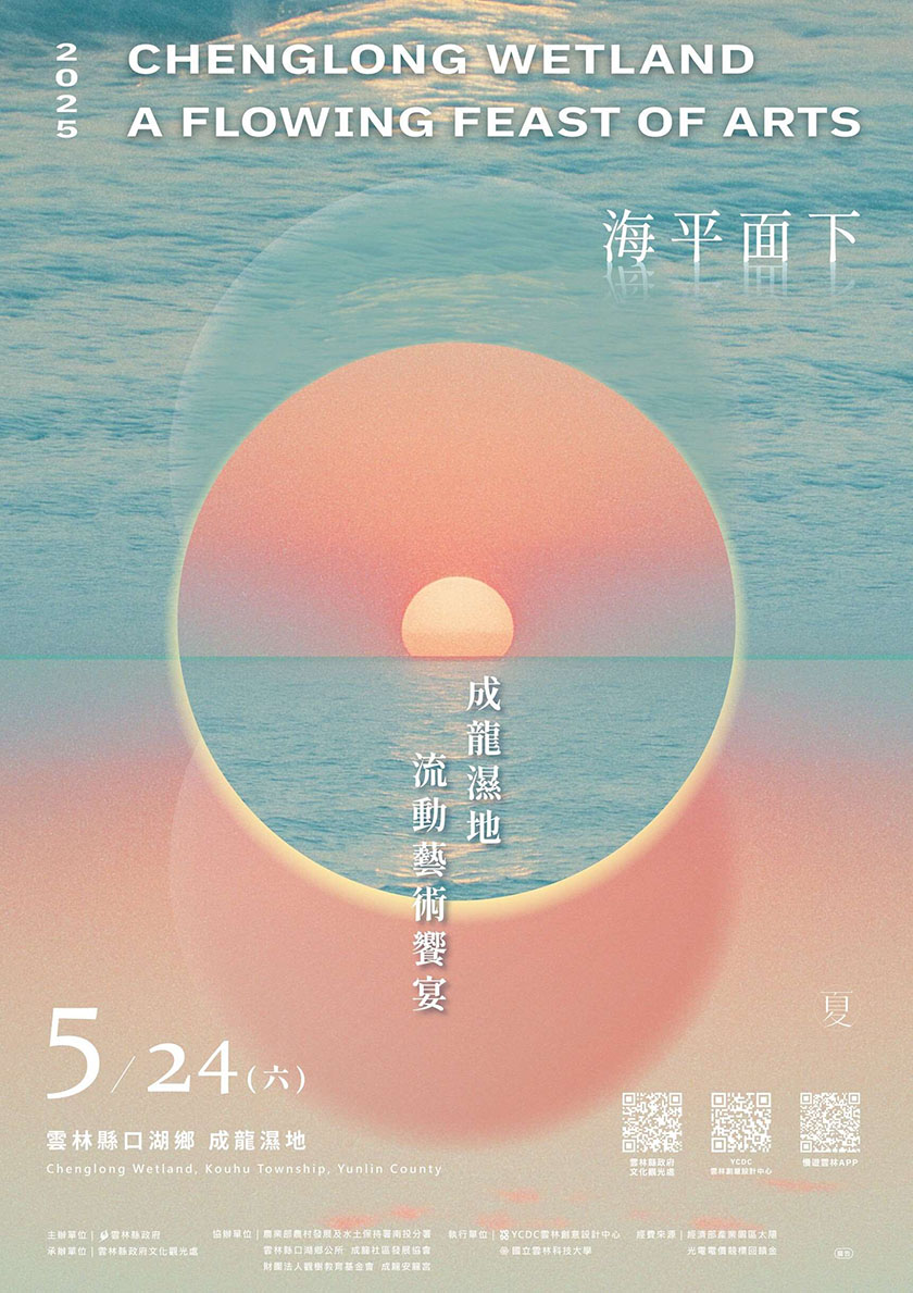 城市生活報 | 雲林編輯中心 編輯報導 | 2025.05.09 | 「2025成龍濕地流動藝術饗宴」即將於5月24日(六)登場,主視覺設計正式公開。此次設計以「日落映照水面」為核心意象,選用柔和的海洋藍與夕陽橘為主色調,營造出濕地特有的靜謐與流動感。畫面中央的圓形光暈象徵夕陽,亦寓意自然與藝術交會的能量中心,與水平線交織形成「海平面下」的延伸意象,呈現濕地地貌的獨特視角。 視覺風格採用了膠卷噪點與柔焦暈染的技法,傳達濕地水氣瀰漫、流動不定的質感,讓觀者從視覺上即能感受到「流動」的情緒與節奏。整體構圖保留空間感,文字設計簡潔有韻律,突顯藝術與自然共生的理念。 本次設計也呼應雲林沿海地區面臨的地層下陷議題。因過度抽取地下水、農業壓力與氣候變遷等因素,導致土地下沉、農地鹽化、村落淹水等問題日益嚴重。此視覺作品試圖透過藝術語彙,讓隱形的環境變化轉化為可被理解與感知的公共語言,喚起社會對環境議題的關注與反思。 活動內容方面,今年不僅延續過去裝置藝術創作的傳統,亦規劃環境劇場演出,將結合多元演出團隊展現濕地故事。現場還將設有豐富的海味市集、街頭音樂演出、在地遊程體驗與以在地食材為主題的微醺餐桌,打造結合藝術、人文與自然的全方位感官饗宴,邀請大眾共赴這場專屬濕地的節慶盛會。 |