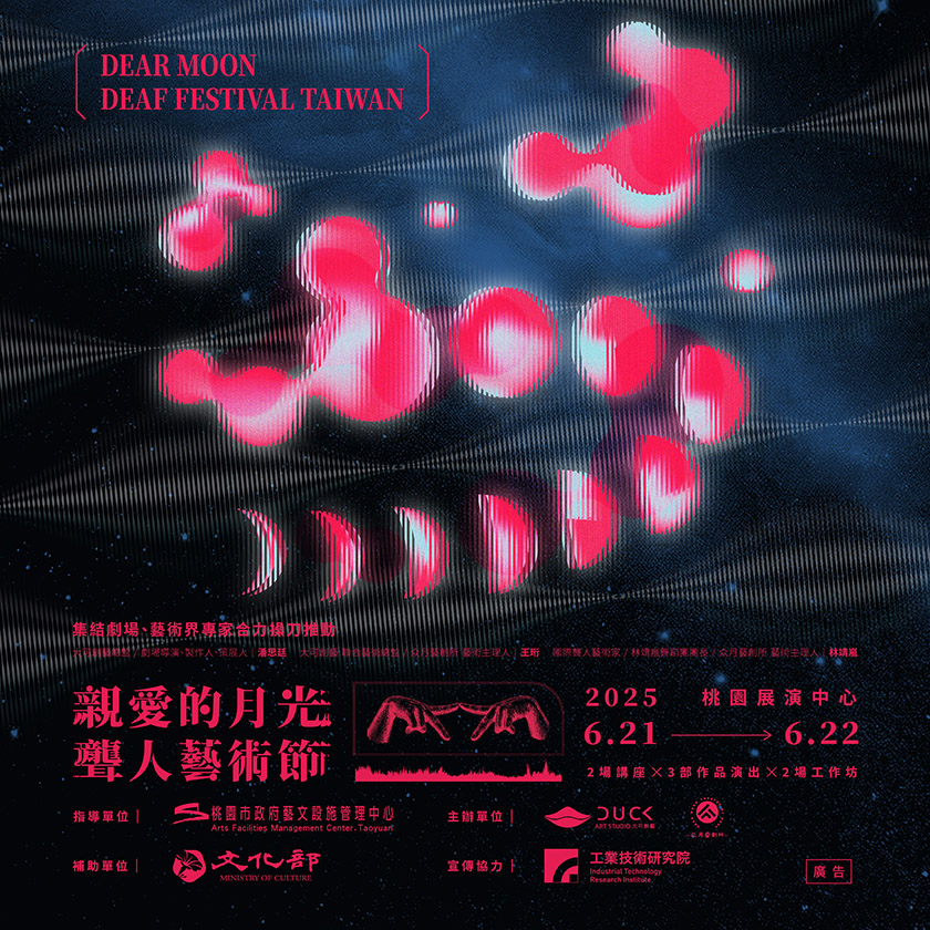 城市生活報 | 桃園編輯中心 採訪報導 | 2025.05.15 | 台灣藝術展演百花齊放,但屬於聾人表演者的舞台卻仍稀少可見。為推動文化平權與藝術共融理念,2025年6月21日至22日,一場以聾人文化為核心的專屬藝術節——「親愛的月光聾人藝術節」,即將在桃園展演中心盛大登場。 本藝術節由展演中心年度駐館團隊全力策劃,為台灣首個以聾人為主體並結合共融設計的專業展演活動,展現對多元參與與平等藝術空間的長期承諾。透過開放場館、無障礙設計與共融製作,展演中心致力於打造一個讓各種感官條件的觀眾與創作者皆能自在參與的藝文平台。 藝術節的籌辦,是自2023年起展演中心與表演團隊合作推動「藝術共融」計畫的延伸與昇華。過去推出的聾人原創演出、專為聽障觀眾設計的藝文導覽,以及探索多感知經驗的實驗作品皆獲得廣大回響,今年更進一步匯聚成果,打造專屬聾人文化的藝術盛會。 本屆藝術節將呈現三部由聾人表演者自編自導的短篇劇作,兩場深度論壇,以及兩場跨感官互動工作坊,透過手語翻譯、視覺設計、肢體表達與即時聽打等多項無障礙服務,邀請觀眾打破語言與感官界線,走入一個更包容、開放的藝術世界。 「親愛的月光聾人藝術節」不僅是一場演出,更是一種觀念的實踐。透過豐富的節目安排與多元感知的展現,傳遞「跨越感官界線、擁抱多元感知」的價值,讓無聲世界的藝術光芒被更多人看見、聽見、感受到。 |