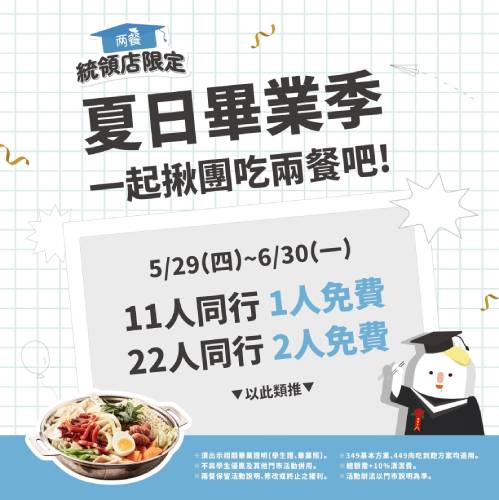 為迎接端午連假與畢業季的到來,統領廣場於5月29日至6月30日舉辦年中慶活動,精心籌劃展開夏日的「玩樂計畫」,無論是時尚穿搭、美食饗宴,還是專屬畢業回憶一次滿足。 端午連假限定期間為5/30–6/1,單筆滿5,000元即可參加抽獎,有機會獲得「橫濱牛排」貴賓券、「默爾義大利餐廳」抵用券、「bbq. CHICKEN」兌換券等好禮。加入統領LINE@並單筆消費滿500元,再送「可不可熟成紅茶」飲品抵用券,消暑購物一把抓。 畢業生專屬活動期間為6/28–6/30,出示學生證或穿著制服,單筆消費滿500元贈「Oolab」復刻皮革杯提袋。6/30結業式當日,滿100元再送棉花糖兌換序號與拍貼機折價券。當日上午11點,中正路入口還有學生專屬歡迎活動,現場氣氛熱鬧,留下精彩畢業回憶。 夏日穿搭推薦 統領廣場集結桃園地區限定品牌與新款商品,包括:1F「MISS21」花朵厚底涼鞋、2F「OB嚴選」涼感罩衫、3F「WAVE SHINE」夢幻平口洋裝獨家販售:「NIKE」Air Jordan 3、水泥灰復古跑鞋、「plain-me」聯名系列等,穿出自我風格。 美食優惠一網打盡 新開幕「橫濱牛排」贈電子優惠券,持市民卡再享折扣。憑學生證享「原燒」雙人套餐送雪花牛、「兩餐」11人同行1人免費等獨家優惠。1F「耘菓」蜜柑伯爵蛋糕特價、「旅禾」泡芙禮盒甜蜜優惠。 三波滿額贈與住宿抽獎 單筆消費滿3,000元可於指定期間兌換精選好禮,包括:5/29–6/1:「THE BODY SHOP」櫻桃香氛禮盒、6/2–6/15:「Oolab」經典提袋、6/16–6/30:「LANDSEED」洗面乳。單筆滿3,500元再獲住宿抽獎資格,有機會入住「旅幸福集團酒店」四人房,為暑假增添驚喜。統領廣場精心籌劃夏天盛典,邀請全國民眾親自到統領廣場走一趟,換季穿搭、甜點小聚、與朋友一起迎接嶄新的旅程! |