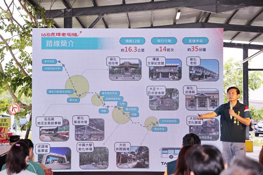 城市生活報|台南編輯中心 編輯報導 |2025.07.31 | 為強化南168線沿線觀光資源串聯,台南市推出全新台灣好行「168虎埤老街線」,將於114年8月1日正式開行。新路線以新市火車站為起點,直達多處山區景點,讓遊客不必轉乘,即可輕鬆暢遊台南淺山風光。 此路線沿途涵蓋「虎頭埤風景區」、「新化林場」與「大坑休閒農場」等熱門景點,並串聯新化老街,沿線也網羅多項在地美食,如燻羊肉、羊肉湯、現烤蛋糕與茶葉蛋等,適合規劃1到2日的深度旅遊,體驗大目降老街風情及自然景緻。 該路線每日行駛14班次,整合台鐵與公車系統,減少自駕負擔,提供低碳旅遊選擇。從新市火車站、新化老街到南168線主要景點,皆可一車直達,鼓勵旅客在暑假期間以輕鬆自在的方式探索台南。 「168虎埤老街線」名稱取自主要途經的新化老街與虎頭埤,具備地方辨識度與文化意涵。車體採台灣好行3.0主視覺塗裝,搭配明亮色彩與活潑圖像,提升辨識度與旅遊形象。未來也將搭配主題遊程與優惠套票,促進沿線餐飲、農產、市集與旅宿產業發展,讓交通成為觀光與產業的橋梁。 本路線由興南客運營運,全長約16.3公里,單程行車約40分鐘,票價採里程計費,起訖點單程票價為53元。全線設置12站,分別為:新市火車站、中信科技大學、國泰大樓(新化老街)、新化站、新化果菜市場、虎頭埤風景區、埤後、口埤、興大林場、筍廠、南屏農場、大坑休閒農場。 建議遊客可上午從新市出發,上午暢遊山林與湖景,中午品嚐美食,傍晚入住農場體驗自然設施,隔日清晨前往二寮欣賞壯麗日出與雲海,彈性規劃旅程,享受台南山城的魅力。詳細路線與時刻表資訊,可至台灣好行官網查詢。 |
