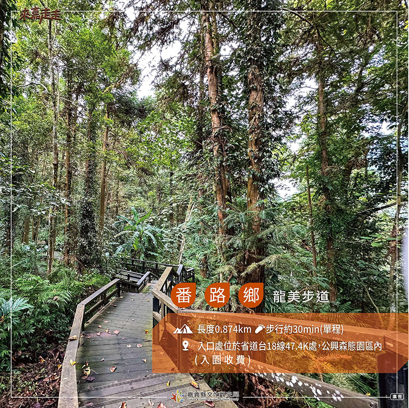 城市生活報 | 嘉義採訪中心 編輯報導 | 2025.10.01 | 秋色漸濃,正是闔家踏青的好時節。嘉義縣文化觀光局「步入嘉境」系列路線,特別推薦番路鄉三條親子友善步道──二延平步道、龍美步道及龍銀山步道,結合自然生態、茶園景致與在地人文,邀請親子共遊山林,體驗溫馨自在的旅行時光。 二延平步道以茶園雲海與夕陽美景著稱,步道平緩好走,是攝影愛好者必訪景點。假日期間更有在地小攤聚集,遊客可品嚐阿里山愛玉、窯烤麵包、咖啡與雞蛋糕,下山前還能選購新鮮高山蔬菜,旅程更添風味。 位於公興森態園區的龍美步道,全長874公尺,穿梭於杉木林間,氛圍幽靜清新。園區內提供愛玉手洗、拓染等DIY體驗,並能品嚐山粉圓檸檬愛玉,是家庭休閒的好選擇。 龍銀山步道則以靜謐竹林聞名,相傳曾為盜匪藏銀之地。步道設有觀景台,可俯瞰茶園風光,適合親子同遊,感受山林的純粹魅力。 此外,番路周邊景點也適合串聯安排:可到鄒族逐鹿文創園區與梅花鹿互動、體驗部落射箭與歌舞;在欣欣水泥森活園動手DIY水泥盆栽;或到珍5吉咖啡莊園、旭隆製茶體驗烘豆與手揉茶工藝。若想小憩,可在仙井咖啡館、飲山郁享受山景第一排,細細品味在地茶香與咖啡風味。 嘉義縣府表示,番路鄉的親子步道兼具自然景觀與文化體驗,歡迎遊客把握秋日時光,走進山林,享受親子共遊的美好記憶。 |