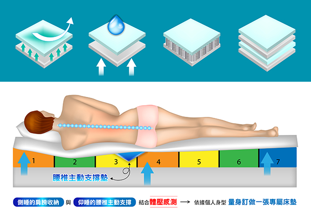 CLN城市生活報 | 睡眠健康專欄主筆 劉智源 老師 | 2023 06 21 | 睡眠醫學期刊2019 年 12 月第 64 卷,針對床墊軟硬度的研究結論表示:對 59 名健康參與者進行了脊柱排列評估,這項研究表明,“一刀切”的床墊方法可能並不合適。截然不同的體型需要不同程度的支撐來改善整體脊柱排列,讓椎間盤重新補充水份、讓脊柱肌肉在整夜放鬆。 脊椎是需要保養的,脊椎的老化從椎間盤開始,使用不正確的姿勢時會因肌肉放鬆而感到舒服,但椎間盤卻因而承受壓力造成老化加速。椎間盤在白天會因坐姿、立姿受到壓迫造成水份流失,必須藉由在睡眠中將流失的水分補充回來,並在睡眠中做組織的修復;所以如何讓睡眠中的脊椎在正確的生理曲線,讓椎間盤的得到最好的養護,是枕頭與床墊在睡眠中需要扮演的重要功能。 Power Sleep 與醫學中心合作,依據個人身型來調整枕頭與床墊,能讓睡眠中的體態能在良好的生理曲線上。 不是賣床、不是賣枕頭~是藉由「姿勢評估」了解您的身型(直脖子、龜脖子?圓肩?駝背?腰椎前傾還是坍塌?骨盆前傾?)針對您的狀態為您量身訂作個人的枕頭與床墊;並依據您的症狀建議你相對應的伸展運動~陪您一起找回正確的體態,將身體的健康找回來! 一、枕頭的量測 頸椎:依據人體實驗於國際復健醫學會發表的研究,先依據不同的體態選擇符合的枕型。仰睡量測胸鎖乳突肌18度決定枕頭的高度,頸椎的的仰角以量測眼角與耳孔夾角10度角為基準;側睡枕頭的高度則以頸椎的水平為標準。 二、床墊的調整: 1.胸椎:仰睡要有足夠的支撐,側睡要能夠將肩膀收納;讓睡眠中的胸椎在水平位置。 2.腰椎:先量測腰椎椎弓前傾的深度,給予主動式的支撐,讓肌肉放鬆的同時椎間盤也得到最好的保護。 睡眠健康專家 劉智源 老師 * 醫學中心放射科:脊椎正位與健康的相關性。 * 日本礒谷式脊椎正位療法:脊椎正位的骨盆調整手法。 * 北醫美式整脊研習:脊椎正位與足弓高低的調整。 * 中華民國脊椎矯正學會健走杖指導員:健走杖運動,肌力訓練與體態調整。 * 枕頭床墊30年經驗,與醫學中心合作研發,成果發表榮獲多項國際醫學獎項。 |