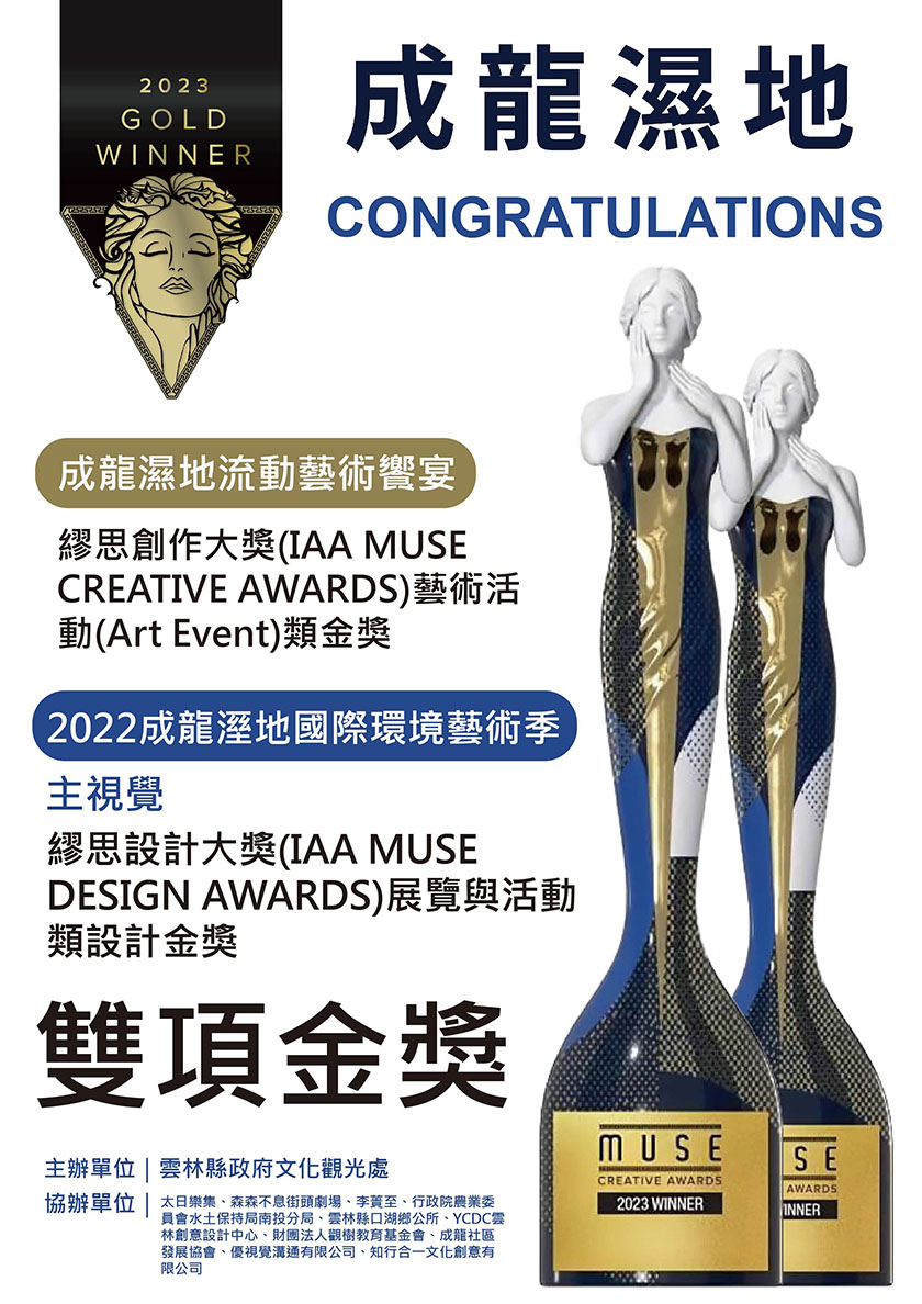 城市生活報 | 本報編輯部 雲林編輯報導 | 2023.09.08 | 雲林偏鄉漁村大放異彩,成龍溼地榮獲美國繆思大獎雙項金獎殊榮!由文化觀光處主辦的《成龍濕地流動藝術饗宴》活動,再度榮獲國際獎項肯定!繼先前榮獲「德國紅點設計大獎」後,再度榮獲美國繆思創作大獎(IAA MUSE CREATIVE AWARDS)藝術活動類創作金獎;同時間,「2022成龍溼地國際環境藝術季」主視覺設計,亦拿下美國繆思設計大獎(IAA MUSE DESIGN AWARDS)展覽與活動類設計金獎,兩個獎項同時獲選,展現雲林最佳軟實力。 雲林偏鄉漁村大放異彩,成龍溼地榮獲美國繆思大獎雙項金獎殊榮!雲林偏鄉漁村大放異彩,成龍溼地榮獲美國繆思大獎雙項金獎殊榮! 「流動藝術饗宴」是文化觀光處陳璧君處長於疫情期間策劃出的雲林活動品牌,將表演藝術與古蹟歷建、自然環境景點融合一體的沉浸式演出型態,成功打破劇場舞台的框架,讓表演型態呈現更加多元樣貌,推出之後獲得民眾高度迴響,而《成龍溼地流動藝術饗宴》是其中最令人驚豔的活動安排,陳璧君處長非常喜悅的表示,當初的構想竟屢獲國際獎項肯定,也為縣府文化觀光處拿到第15、16座國際大獎。 文化觀光處長陳璧君指出,成龍溼地是雲林縣重要觀光景點,更是雲西文化觀光廊帶的一顆明珠,無論在生態和景觀都非常的出色,最美麗的時刻正是夕陽即將落下,落日餘暉的光芒與濕地水面相互倒映出的景色;2020成龍濕地流動藝術饗宴《綻放》設計理念,就是以此為發想,以濕地為背景,邀請雲林縣傑出演藝團隊太日樂集及趙敦毅老師聯合演出,呈現環境藝術之美,以自然生態為主題,經由表演者的音樂和舞蹈展現成龍濕地生命能量,並透過生態餐桌、在地食材等表達對土地的感恩和帶動地方產業特色;延續至2022成龍濕地國際環境藝術季《洄光》,更擴大沉浸式演出構想,由太日樂集藝術總監張呈遠老師結合在地夕陽餘暉美景,搭配李蕢至老師設計的裝置藝術《種子》,讓太日樂集和森森不息街頭劇場合作演出中,藉由笛聲劃出時光長弧,鼓聲撼動日光照耀粼粼水波,感受成龍村的生命力,並獲得極高的喝采。 成龍濕地-MUSE金獎成龍濕地-MUSE金獎 文化觀光處長陳璧君進一步表示,《成龍溼地流動藝術饗宴》受限於當地環境的限制,在活動的安排及規劃上相當不容易,不僅僅要克服演出環境,氣候因素、腹地大小也是重要的考量,兩次的活動規劃,文化觀光處與藝術總監、表演團隊經過多次的現勘、討論及彩排,並且齊力克服多種困境,只希望將最美的成龍溼地、最好的節目內容呈現給大家,因此能獲得這份殊榮是相當不容易。 此外,除了活動獲獎之外,「2022成龍溼地國際環境藝術季」主視覺設計也同時榮美國繆思設計大獎(IAA MUSE DESIGN AWARDS)展覽與活動類設計金獎,可謂雙喜臨門,文觀處這幾年在提昇活動的內容和品質不遺餘力,運用在地團隊成功將在地文化特色融入,充分展現「越在地越國際」,也顯示出公部門設計美學及美感敏銳度已經大幅度的翻轉及前進,更透過這個獎項,讓全世界看見雲林的美令人驚艷,徹底顛覆雲林傳統農業大縣的刻板印象,成功行銷雲林觀光。 雲林縣長張麗善表示今年《2023成龍溼地流動藝術饗宴》活動預計在10月14日(六)、15日(日)辦理,縣府希望能帶來更精彩的活動內容。除了活動之外,成龍濕地在社區營造和環境保育方面也有很大的成果,溼地與村落居民共生共存,休戚與共,有這群居民守護自己居住的溼地,由下而上結合民間團體、地方政府與中央機構,朝著推展生態保育、藝文扎根、向海洋學習的示範基地前進。2010年起舉辦「成龍溼地國際環境藝術節」延續至今的流動藝術饗宴,以環境藝術為核心,經由駐地藝術家與當地居民的合作,在就地取材、在地參與、共同創作、引介後續交流的種種裝置藝術等過程,引領社區居民與社會大眾關注溼地與人的環境議題,成為國內自然生態結合環境藝術季的標竿村落。 雲林縣政府希望持續透過藝術行動,引發民眾對於濕地的重視,並結合觀光旅遊創造亮眼的參與人次,溼地生態與藝術相互融合成為大眾最美的記憶,並結合聯合國SDGS永續發展指標,讓成龍濕地從偏鄉小漁村逆境中翻轉,創造地方產業經濟提升,發展文化觀光特色,擾動成為「生態保育、藝文扎根」的國際永續藝術村。 |