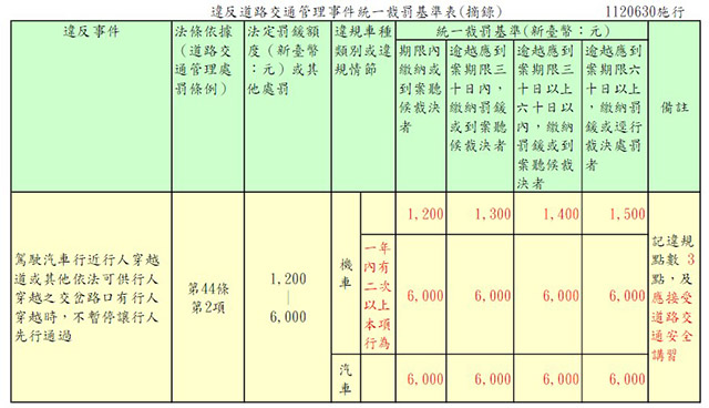 CLN城市生活報 | 本報編輯部 新北編輯報導 | 2023.10.02 | 新北市交通事件裁決處統計,汽機車行近行人穿越道不停讓行人新法上路2個月以來,車輛不停讓行人違規件數較去(111)年同期大幅增加2.6倍;裁決處呼籲汽機車駕駛人行近行人穿越道或可供行人穿越的路口時,一定要停讓行人先行,共同維護行人友善環境。 裁決處長李忠台表示,自今(112)年6月30日起,汽機車行近行人穿越道或其他依法可供行人穿越的交岔路口不停讓行人,最高可罰6,000元,並記違規點數3點(違規點數1年內達12點,吊扣駕駛執照2個月)及應接受道路交通安全講習3小時。裁決處經統計7、8月車輛不停讓行人違規件數有7,480件,比起去年同期2,940件,大幅增加了2.6倍之多。 裁決處再次提醒汽機車駕駛人行近行人穿越道或可供行人穿越的路口時,一定要停讓行人,除保護行人和自身安全外,並避免受罰;另外,如需查詢交通違規記點資料,可透過監理服務網(https://www.mvdis.gov.tw/m3-emv-vil/vil/driverPenalty)或以手機下載監理服務APP查詢,或尚未繳納罰鍰前亦可利用四大超商(統一、全家、萊爾富、OK)的多媒體機查詢,或撥打裁決處服務電話02-89786101轉9,該處派有專人為您服務。 |
