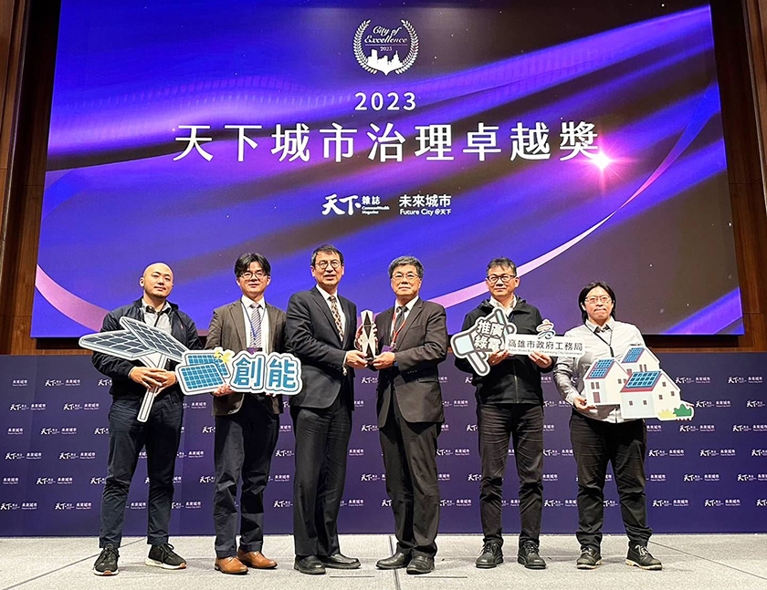 城市生活報 | 本報編輯部 高雄編輯報導 | 2023.12.07 | 天下城市治理卓越獎今(6)日頒發「天下城市治理卓越獎」,高雄市政府工務局以「高雄創能光電-打造淨零城市」專案獲選2023天下城市治理卓越獎環境保護組優選殊榮,由行政院副院長鄭文燦及行政院發言人兼能源及減碳辦公室副執行長林子倫頒獎,頒獎表揚20個以聯合國永續發展目標(SDGs)為核心,對臺灣永續發展有實質貢獻的獲獎單位。 頒獎典禮中高市府工務局長楊欽富於專題討論分享推動能源永續政策的經驗案例,透過專責組織綠電小組定期會議與進度目標追蹤,並依「高雄市綠電推動專案小組」之各局處專責負責推動分工管考,如環保局減碳議題、經發局負責能源政策推動議題、工務局推展太陽光電議題、海洋局推動漁電共生議題、教育局環境教育議題,由上而下的將跨領域的淨零政策延續。 《天下雜誌》「未來城市」首次推出「天下城市治理卓越獎」,今年度共215個專案參賽,由考試院院長黃榮村擔任評審長,歷經書面初選及面談決選審查,最後從20縣市的215件專案中選出20件得獎專案,高雄市則拿下4座優選,六都中表現最優。本次能獲天下城市治理卓越獎的殊榮,不僅是對高雄市政府工務局努力的認可,也是對台灣淨零發展的重要支持,未來會持續積極轉型推動綠色能源、綠色生產技術和綠色產業的發展,著力打造綠色能源家園。 |