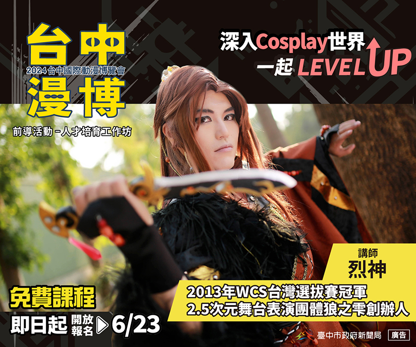 城市生活報 | 本報編輯部 台中編輯報導 | 2024.06.06 | 2024台中國際動漫博覽會將於9月21日至28日登場,今年特別推出前導活動「Cosplay人才培育工作坊」,邀請2015與2017WCS日本選拔賽冠軍、2017WCS世界大賽季軍的マヒオ老師及多位台灣Cosplay專家親自授課,課程內容多元,從表演企劃、服裝道具布景製作、舞台演出等面向,不僅讓你Cosplay技能Level up,更陪伴學員完成一場驚豔的Cosplay舞台演出。課程即日起至6月23日開放免費報名,歡迎有興趣的民眾把握機會,踴躍參與! Cosplay熱潮席捲全球,越來越多人喜愛裝扮成自己喜歡的二次元偶像上街。為讓漫迷度過難忘的暑假,台中市政府新聞局特別推出前導活動「Cosplay人才培育工作坊」,此次以「深入Cosplay世界 一起Level up」為主題,課程將於7月20、21、27、28每日下午開課,課程多元且免費,包括角色服裝設計、妝髮製作、舞台演出技巧等多方面技能,學員們努力的成果也會在9月底「2024台中國際動漫博覽會」的大舞台上展示,並由評審選出最佳Cos獎並頒發獎金。 本次工作坊師資陣容堅強,包括榮獲2015與2017WCS日本選拔賽冠軍、2017WCS世界大賽季軍的マヒオ老師;2017年WCS台灣選拔賽冠軍、2019年AnimeCon C4國際賽評審Mr.G老師& Ms.吂老師;WCS台灣COSPLAY高峰會評審總召、DREAM創夢Cosplay綜合情報誌總編輯唐維駿(影繪)老師;2013年WCS台灣選拔賽冠軍、2.5次元舞台表演團體創辦人裂神老師(狼之雫)、超可愛動漫系偶像舞者、編舞師暖爐-Stove-老師以及知名ACG偶像舞蹈團體Re:TurN-Capture-等多位知名Cosplayer擔任講師,將帶領學員深入探索Cosplay世界,並提供專業指導,機會千載難逢。 新聞局表示,2024 台中國際動漫博覽會主活動訂於9月21日(六)至29日(日),今年主題為「熱血、冒險」,除了展出台灣熱血漫畫外,假日有市集、講座、街頭音樂秀,9月28日特別加碼邀請日本知名動畫如《火影忍者-疾風傳》、《光之美少女》等作品之作曲家高梨康治及其團隊來台表演。 |